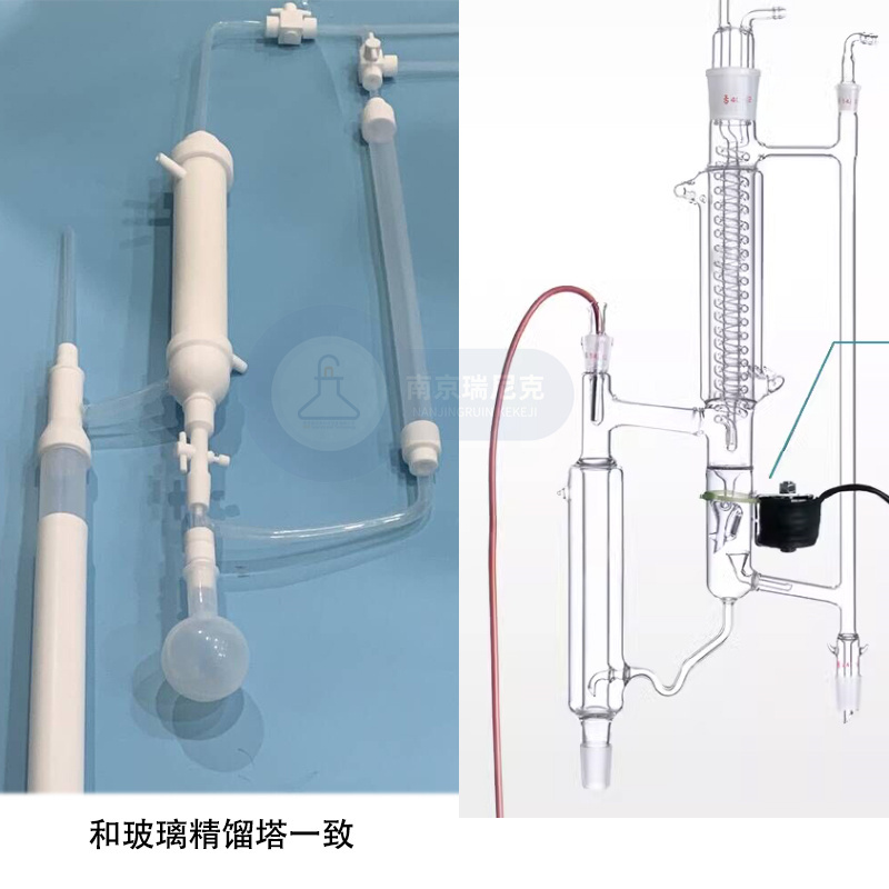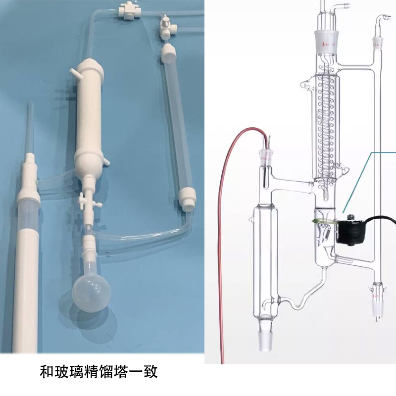 PFA系列產(chǎn)品 塑料PFA特氟龍精餾塔實(shí)驗(yàn)室小試精餾裝置減壓蒸餾電加熱精餾柱精餾釜 材料:PFA 規(guī)格:PFA 描述:PFA精餾裝置-精餾柱PFA精餾柱是精餾塔的縮小版精餾是利用混合物中各組分揮發(fā)度不同而將各組分加以分離的一種分離過(guò)程其實(shí)作用就是分離過(guò)濾,客戶一般會(huì)在精餾柱中放高效精密填料也叫填充物,以實(shí)現(xiàn)待分離組分的分離提純,精餾柱的底部也會(huì)放篩板進(jìn)行過(guò)··· 產(chǎn)品詳情 PFA精餾裝置-精餾柱PFA精餾柱是精餾塔的縮小版精餾是利用混合物中各組分揮發(fā)度不同而將各組分加以分離的一種分離過(guò)程其實(shí)作用就是分離過(guò)濾,客戶一般會(huì)在精餾柱中放高效精密填料也叫填充物,以實(shí)現(xiàn)待分離組分的分離提純,精餾柱的底部也會(huì)放篩板進(jìn)行過(guò)濾到燒瓶中加熱進(jìn)行下一步的反應(yīng)。燒瓶進(jìn)行加熱,產(chǎn)生的氣體和液體在精餾柱中過(guò)濾反應(yīng),氣體會(huì)蒸發(fā)到頂部過(guò)到冷凝中進(jìn)行冷凝過(guò)濾后的液體流到燒瓶中繼續(xù)反復(fù)加熱 蒸發(fā) 過(guò)濾 最終冷凝。目前市場(chǎng)上多用到的是玻璃精餾柱,目前我公司生產(chǎn)的是PFA精餾柱,可耐受氟化氫和氫氟酸,耐受有機(jī)溶劑,各種尺寸均可定制產(chǎn)品名稱:特氟龍過(guò)濾柱產(chǎn)品簡(jiǎn)介:利用高度差填充物過(guò)濾樣品,通常是反應(yīng)物有氟化氫或者氫氟酸,采用塑料特氟龍材質(zhì)過(guò)濾柱,也有叫精餾柱,一般用于小實(shí)裝備。材質(zhì)一般選擇PFA/PTFE材質(zhì),PFA材質(zhì)是透明可以看見(jiàn)內(nèi)部反應(yīng),本底值純凈,PTFE純白不透明,無(wú)法看見(jiàn),但是耐壓性優(yōu)于PFA材質(zhì),根據(jù)實(shí)驗(yàn)要求選擇定制材質(zhì)和尺寸,通??梢詭讉€(gè)過(guò)濾柱一起連接反應(yīng),也可以單獨(dú)配套反應(yīng)瓶等設(shè)備做精餾塔小實(shí)反應(yīng)。產(chǎn)品特點(diǎn):耐酸堿耐腐蝕,本底值低,不會(huì)污染樣品,可以定制加工,多個(gè)連接。應(yīng)用行業(yè):新材料半導(dǎo)體行業(yè)